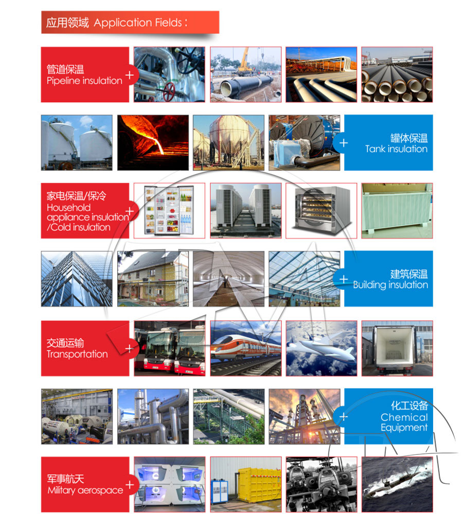 气凝胶绝热保温毡是目前已知导热系数低的绝热材料,它是把二氧化硅气凝胶复合于纤维中,具有柔软﹑易裁剪﹑无机防火﹑整体疏水等特性。主要用于工业管道﹑储罐,工业炉体,电厂,救生舱,直埋管道,注塑机,可拆卸式保温套,稠油开采,交通运输,家用电器,钢铁,有色金属,玻璃等领域的保温隔热。